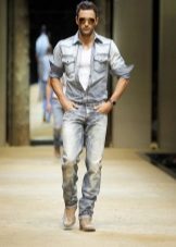 Лучше всего мужские ковбойские сапоги будут сочетаться опять же со стилем casual. Свитера крупной вязки, джинсовые и кожаные куртки поверх футболки или толстовки, однотонные рубашки, плащи прямого покроя и стильные джемперы - идеальные соседи мужским сапогам.