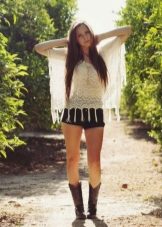 • Шорты. Ковбойские сапоги любят все короткое, и шорты тому не исключение. Материал может быть любым на ваш вкус, как и длинна - чуть выше колена, до середины бедра или мини. Смело надевайте к шортам и сапогам простую белую майку, накидывайте на плечи удлиненный кардиган, а на плечо вешайте замшевую или кожаную сумку в тон обуви - и вуаля! Ваш удобный, но при этом свежий и модный look готов!