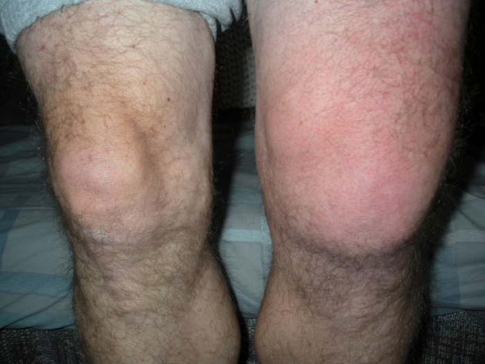 Отечность коленного сустава образовывается вследствие чрезмерной выработки синовиальной жидкости. Как правило, отек возникает через несколько дней после травмы.