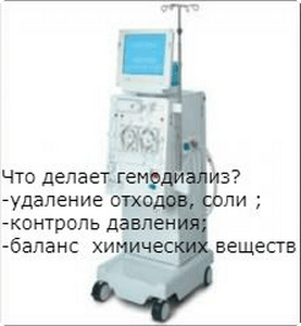 - Гемодиализ (метод очищения крови от продуктов азотистого обмена с помощью специальных аппаратов) – при развитии почечной недостаточности.