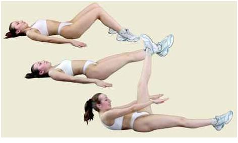 Лягте на спину и поднимите вверх прямые ноги так, чтобы они были перпендикулярны полу. Постарайтесь поднять вверх одновременно плечи и руки, задержавшись в такой позе примерно 20 секунд. Это упражнение рекомендуется повторить 20 раз.