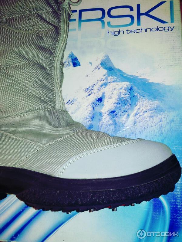 На подошве сапога металлические антигололедные шипы. Я сначала подумала, что на этих сапожках шипы не убираются внутрь, и все равно была рада купить их и ходить в них, когда на улице гололед. Но к моей радости, продавщица разъяснила мне, что система антигололед убирается так же просто, как и на дорогих ботинках. И я купила эти теплые, легкие, удобные противоскользящие сапожки даже не раздумывая и очень довольна этой своей покупкой.