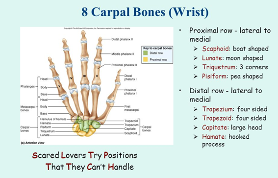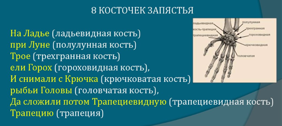 Для того, чтобы запомнить очерёдность костей существуют разные мнемонические правила:
