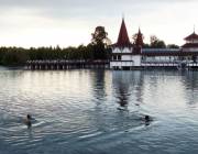 В-третьих, купание в термальных бассейнах. Отели, имеющие термальные бассейны, закачивают туда воду из скважин. Но водные процедуры в термальных бассейнах не способны заменить купание в термальном озере. Дело в том, что в бассейнах невозможно воссоздать уникальную микрофлору термальной воды озера Хевиз. Тот лечебный эффект, который вы получите от пребывания в термальном озере, невозможно получить ни в одном термальном бассейне, даже если вода в него будет закачиваться прямо с озера.