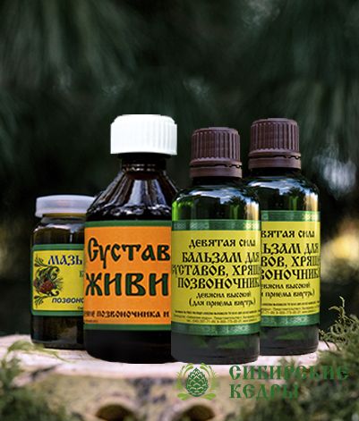 Рекомендуем пропивать курс Целебного бальзама Девятая сила с применением наружных средств: Мазь суставная (усиленная) Богатырь кедров, Живица суставная, растирка суставная Медведь. Мази обеспечивают помощь местного значения, убирая застои, нормализуя кровообращение, снимая боли, исцеляя воспаленные нервные окончания, снимая стрессы с мышц, костей и др.