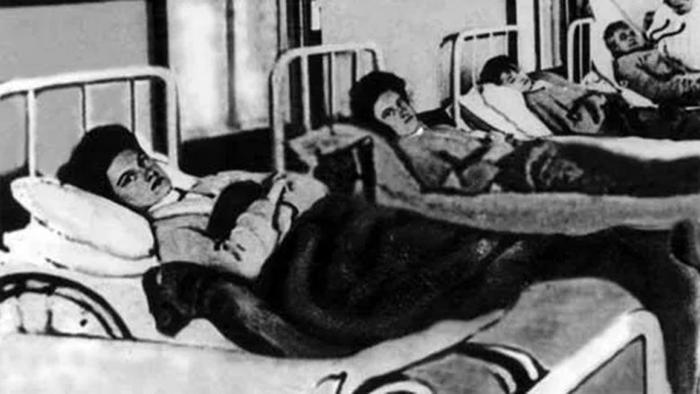 Негодующая Мэри Маллон (на левой кровати) в госпитале во время своего первого карантина