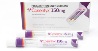 Широкое применение в клинической практике получили новые препараты Хумира (Humira), Энбрел (Enbrel), Голимумаб, Козентикс. Отзывы при болезни Бехтерева в отношении лекарств преимущественно положительные, так как блокаторы интерлейкинов способны эффективно помогать и редко вызывают развитие побочных эффектов. Козентикс (Cosentyx), произведенный в Германии, включен в протоколы лечения болезни Бехтерева.