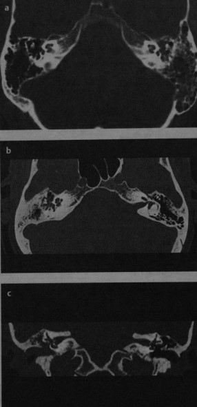 - конфигурация улитки и полукружных каналов типичная;