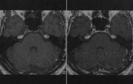 МРТ внутренних слуховых проходов в аксиальной проекции: