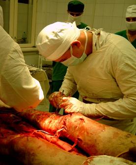 Первичная хирургическая обработка огнестрельной раны правой голени.