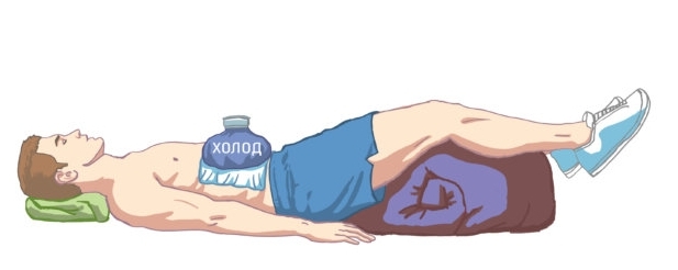 Если защемило и сильно болит живот, можно приложить к нему что-то холодное.