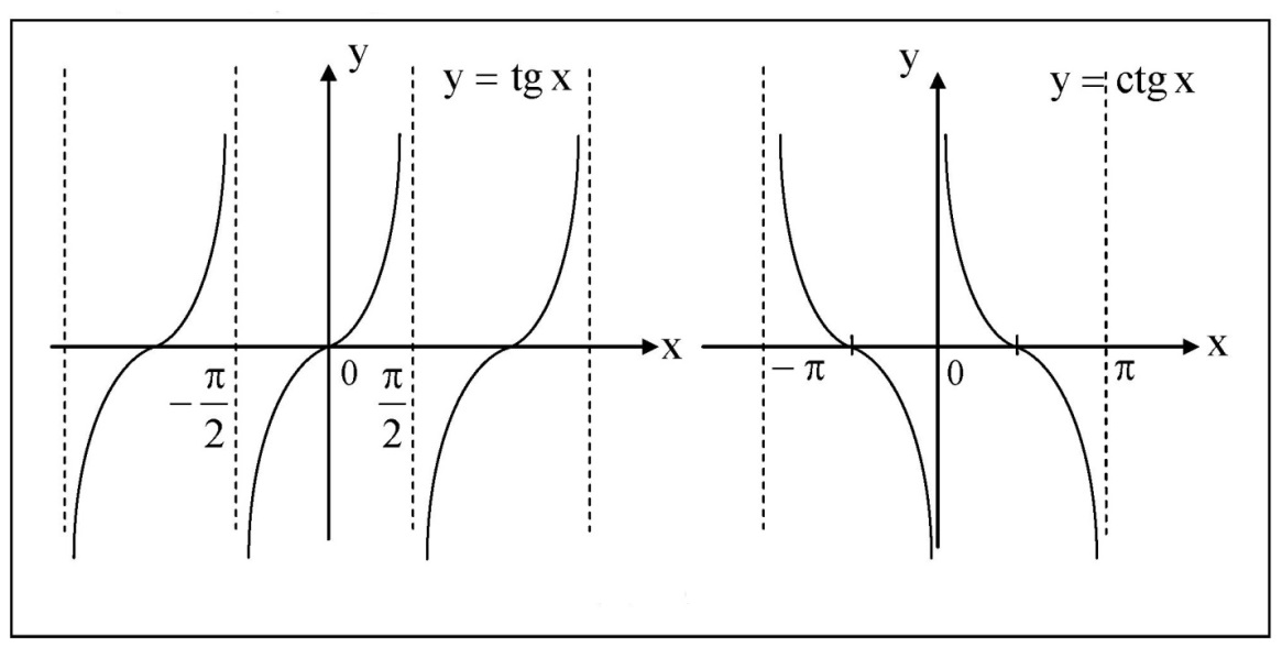 Графики функций y = tan x и y = cot x показаны соответственно на рис.21 и рис .22