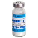- Пенициллин – 20-дневный курс уколов по 4 инъекции в сутки.