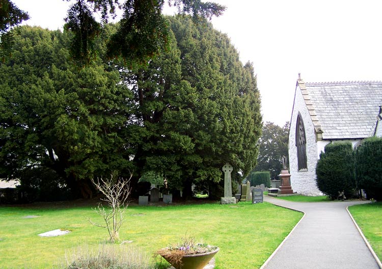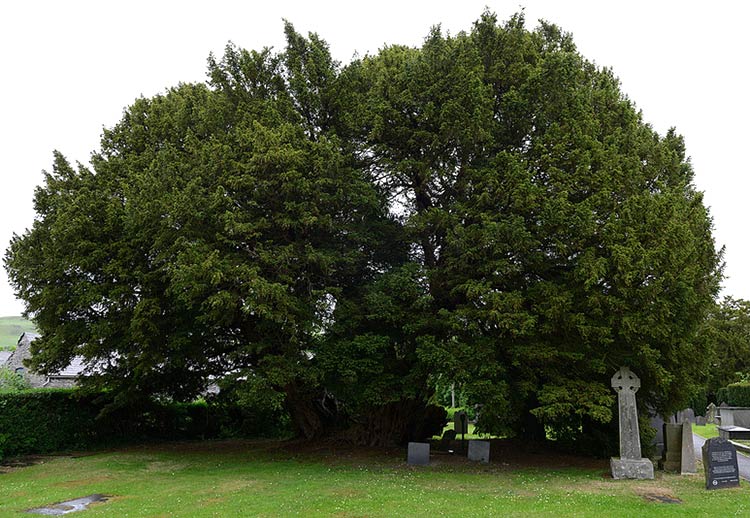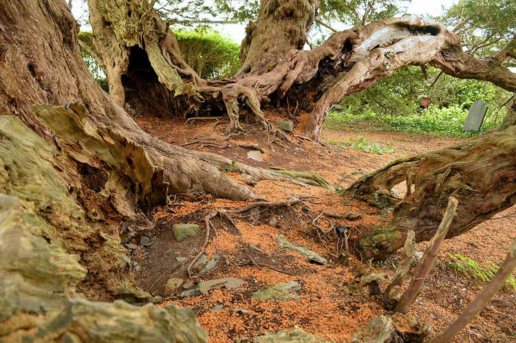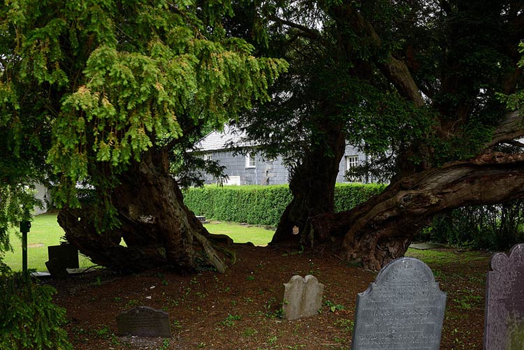 Претендент №2. Тис Ллангерни. Он растёт на кладбище церкви Святого Дигаина в деревне Ллангерни, Уэльс, Великобритания. У этого дерева также отсутствует сердцевина, что опять же затрудняет определение возраста. По оценкам экспертов тису Ллангерни тоже приблизительно 1500-5000 лет. Исследование ботаника Дэвида Джеймса Беллами, видимо, наиболее значимое, раз возле дерева гордо висит сертификат им подписанный, что дереву от 4000 до 5000лет.
