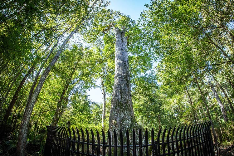 наиболее известное в Новой Зеландии каури носит имя Тане Махута (Tāne Mahuta или “Первое воплощение Тане”) в честь маорийского божества леса Тане. Высота этого гиганта вместе с кроной составляет 51, 5 метров, ствол в обхвате – 13, 8 метров. Возраст каури Тане Махута оценивают примерно в 1500-2500 (по другим данным 1200) лет.