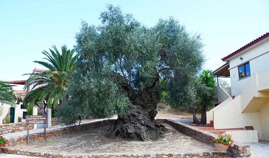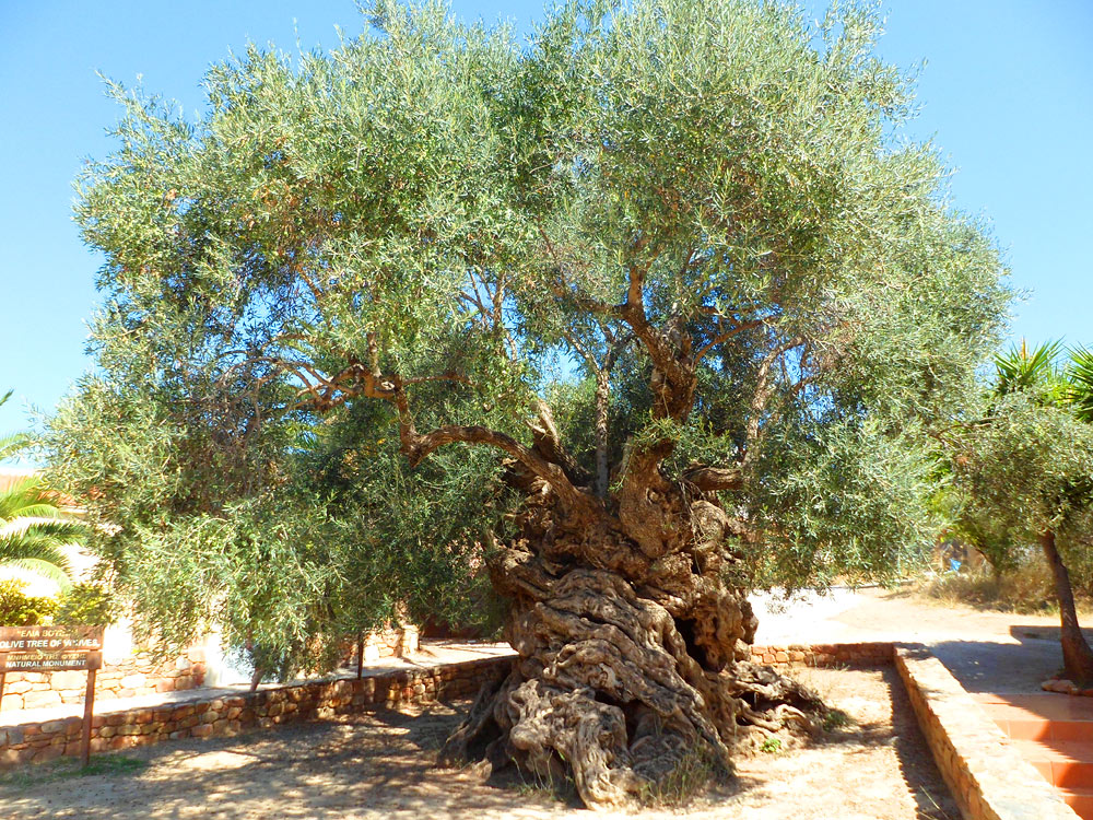 Это самое старое оливковое дерево на Земле. По кольцам его возраст составляет примерно 2000 лет, и с него все еще снимают урожай. По окружности дерево составляет 7 м, не очень высокое, но зато своеобразное. Его ствол невероятно запутан и загнут. Это оливковое дерево может быть тем, о котором писал Плиний старший (23-79 гг н.э.), когда говорил, что видел священное греческое оливковое дерево возрастом уже тогда 1600 лет.