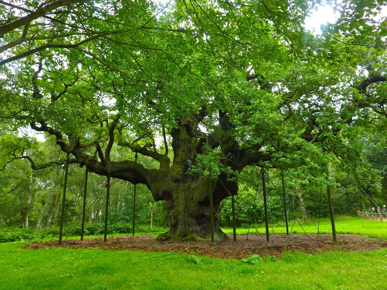 Говорят, что если и был Робин Гуд, то он и его люди точно укрылись под этим деревом, или даже внутри. Дубу где-то 800-1000 лет, поэтому такое вполне возможно. Крона дерева простирается на 40 м, но больше всего туристов привлекает его ствол: 10 м в обхвате. Его ветки такие массивные, что им стали делать подпорки еще со времен королевы Виктории, иначе ветви бы сломались под своей собственной тяжестью. Дерево бы это не убило, а вот вид был бы уже не тот.