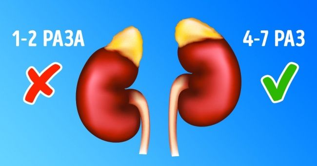 Здоровый человек, выпивающий в день около 2 литров воды, ходит в туалет 6–7 раз в сутки. В зависимости от состава и количества напитков допустимыми считаются также 4–10 раз. Но если при нормальном потреблении жидкости вы стали ходить в туалет меньше 3 раз в день, стоит забеспокоиться.