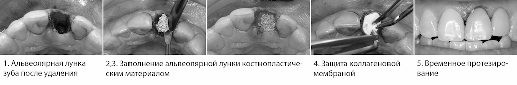 Операция по восстановлению костной ткани начинается, прежде всего, с определения показаний и противопоказаний, диагностики дефекта и выбора трансплантата. Типичная операция по восстановлению утраченных объемов костной ткани осуществляется следующим образом: после обезболивания место подсадки освобождается от мягких тканей, а трансплантационный материал закрепляется в зоне подсадки и, далее, оставшееся пространство возле трасплантата заполняется костной крошкой. После этого оперируемая область закрывается барьерной мембраной – резорбируемой (рассасывающейся) или нерезорбируемой – для обеспечения надёжной фиксации. В конце операции на слизистую оболочку десны накладывается аккуратный шов. В течение последующих 3-6 месяцев на месте подсадки вырастает собственная кость.