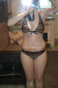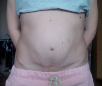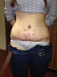 Добрый день. Мне 34 года. 5 лет назад было кесарево. Кожа немого стала нависать. 15 дней назад сделала полную абдоминопластику с переносом пупка и ушивание диастаза.