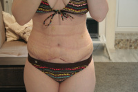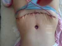 Добрый день!Очень нужен Ваш совет и оценка моего состояния.В октябре 2014 года была сделана абдоминопластика в ОКБ моего города,оперировал пластический хирург N.Была грыжа белой линии,многочисленные растяжки и торчащий пупок (КС в 2008 и КС в 2012 гг.).На консультации N сказал,что липосакцию живота делать не будет ("Здесь я буду иссекать!").Меня это насторожило,но я не доктор. ему лучше знать. Очнувшись после операции,чувствовала себя ужасно. компрессионное белье самого маленького размера оказалось велико(((.Когда его одевали на меня,N сказал,что сейчас расстраиваться не стоит,смотреть на живот не нужно,возможно все еще изменится,что я первая такая у него оперируемая, не с ожирением. В общем,результатом я осталась не довольна.Когда прошел реабилитационный период и сошли отеки,оказалось,что пупок будто пришит к коже (такую длинную ножку мне оставили),складки до конца не расправились,шов кривой и на конце шва кусочек срезанной кожи. Живот как возвышался,так и возвышается,как гора,в области пупка по периметру на 5 см чувствительность нулевая. Все какое-то кривое. Стоит немного поправится,все усугубляется.Еще и подозрение на возвращение диастаза. Депрессия была жуткая. Вопросы:Что со мной сделали?Возможно ли это исправить?Вертикальный шов обязателен ниже пупка или еще и над ним тоже необходим теперь?Прилагаю фото исходника,послеоперационные и вид на данный момент.Спасибо заранее.