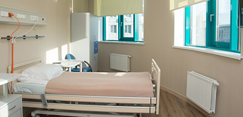 Комфортный стационар с трехразовым питанием, круглосуточным медицинским мониторингом, одно- и двухместными палатами, туалетными комнатами. Просторными зонами отдыха.