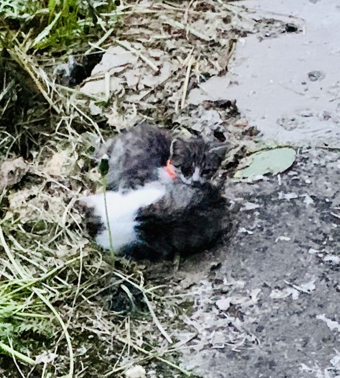 Дети весь день играли с раненым бездомным котенком