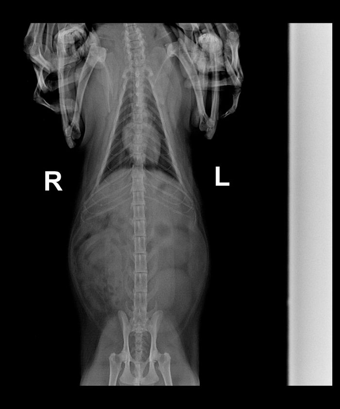 Там же на снимке видно смещение 3 отделе , там где поясница .Я конечно не ветеринар ,я остеопат -массажист человеческий ,но смещение видно . И вопрос : есть ли слабость в задних лапах ,как ходит ? На полусогнутых или выпремляет лапы как обычно.И что со стулом .Как часто ходит на лоток. Если задние лапы ослабели ,есть понос и слабость мочевого ,однозначно есть протрузии поясничного отдела.