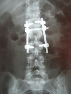 Оперативное вмешательство по поводу спондилодисцита проводится при значительном повреждении позвонков, разрушении диска и деформации позвоночника