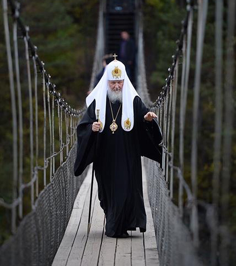 Святейший на мосту над горной рекой на Алтае. Фото: пресс-служба Патриарха