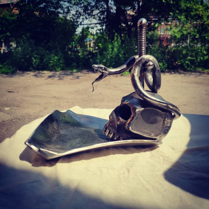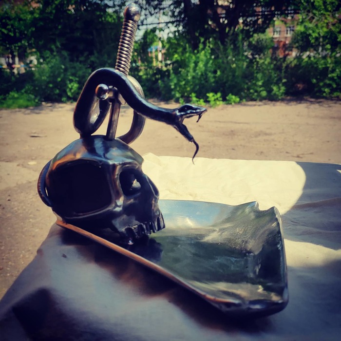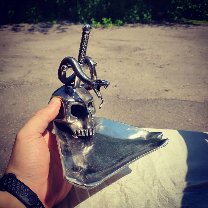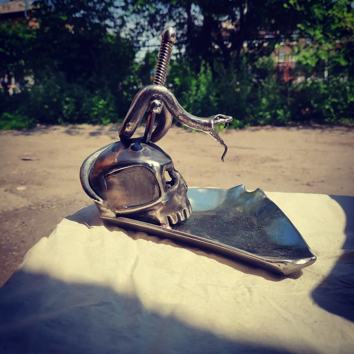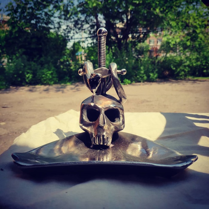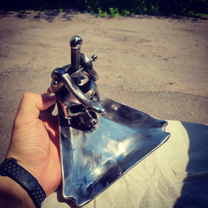 Полирнул, потом нагрел до красна и остудил в воде. Затем ещё отполировал, но не до основания. Поэтому и тёмный металл.