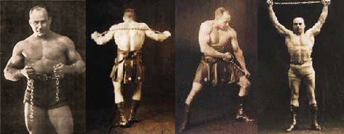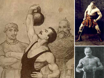 Известный силач начала 20 века Александр Засс разработал собственную систему тренировок с мешками и цепями. Этот атлет никогда не был очень крупным, но то, что он демонстрировал на арене, поражало воображение. Сила его была невероятной. Он рвал подковы и цепи, металлические прутья завязывал бантом, держал лошадей, рвущихся в разные стороны. Железный Самсон Засс считал, что сила заключается не в объеме мускула, а в связках и сухожилиях, то есть в том, что находится в основе мышцы.