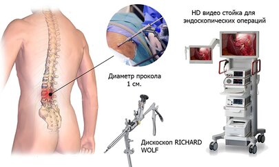 Между соседними позвонками справа и слева находятся межпозвоночные отверстия, через которые выходят нервные корешки. Именно через них хирург вводит тонкий эндоскопический инструмент, чтобы удалить выступающую часть межпозвоночного диска.