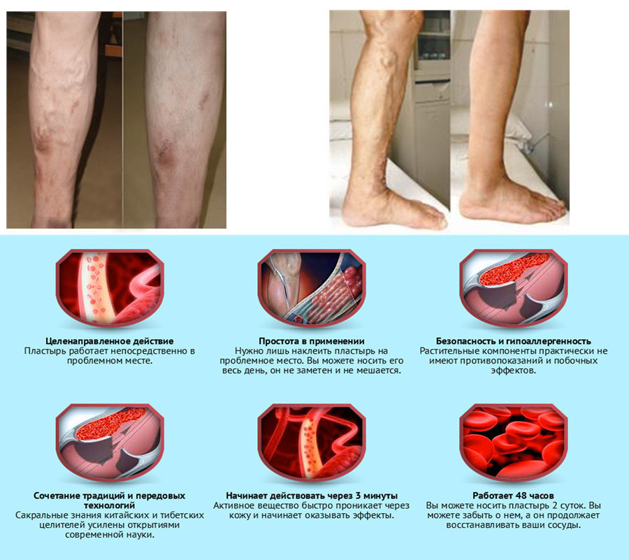 При варикозе пластырь фиксируется непосредственно на пораженном участке.